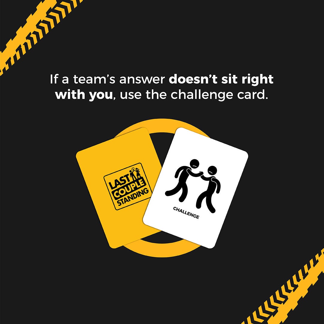 - Make the other couple tap out by asking the wildest question you have in your hand.