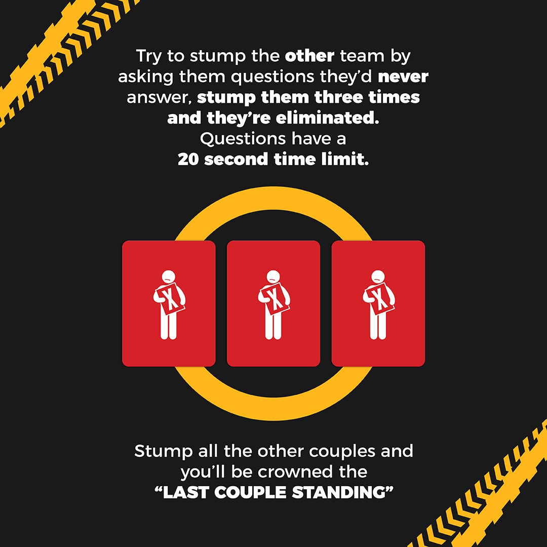 It's the most fun you'll ever have being messy. Ask your friends questions about their relationship that you're dying to know. Be careful though, because they get a turn. And when the shoe is on the other foot will you and your partner answer or tap out and take a stump card?